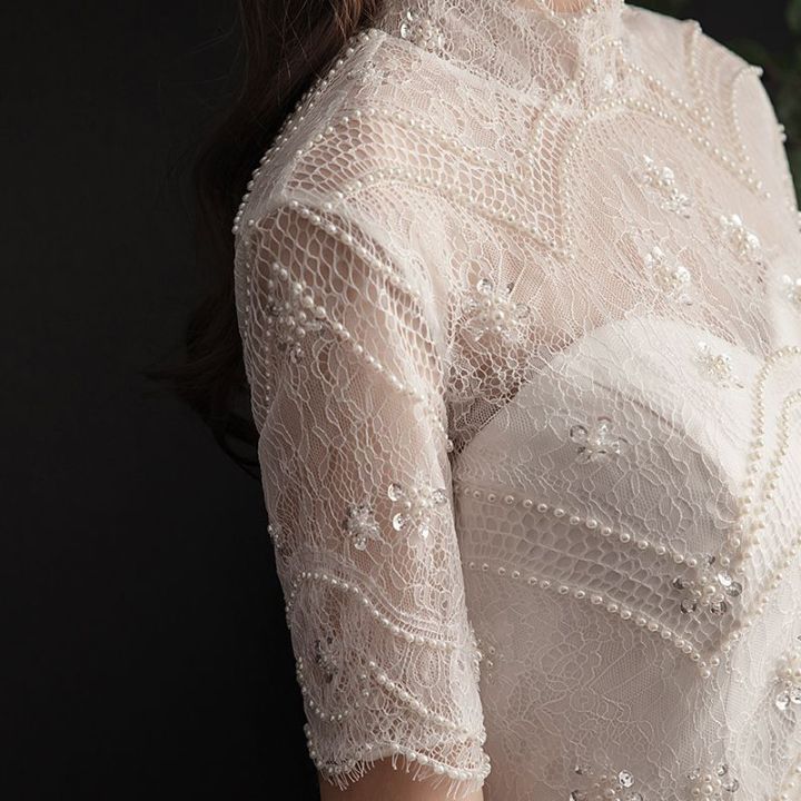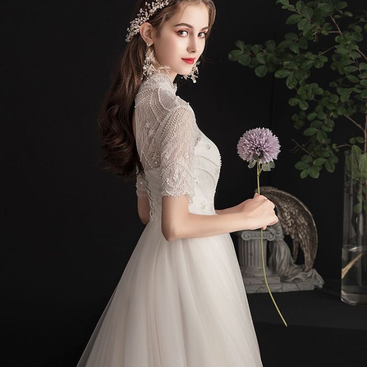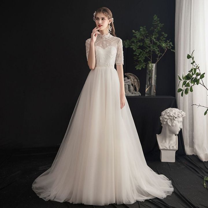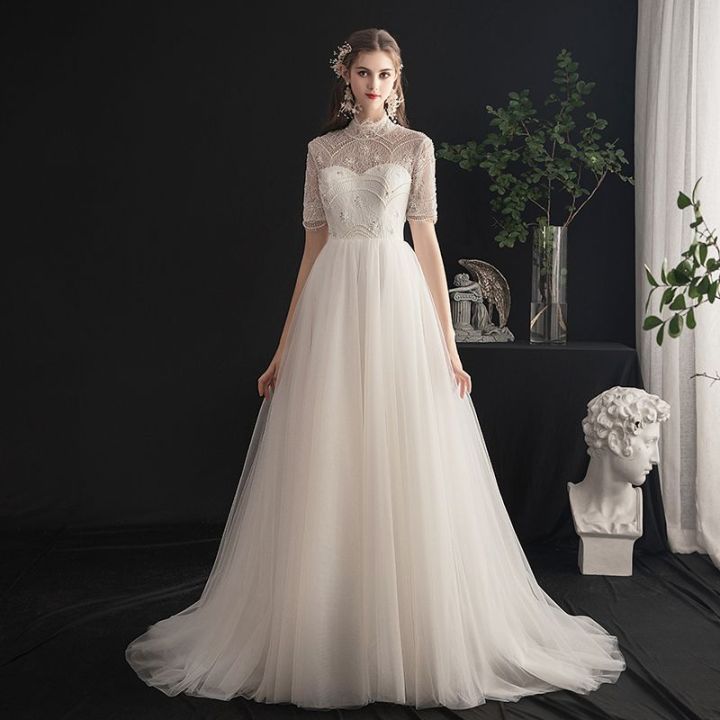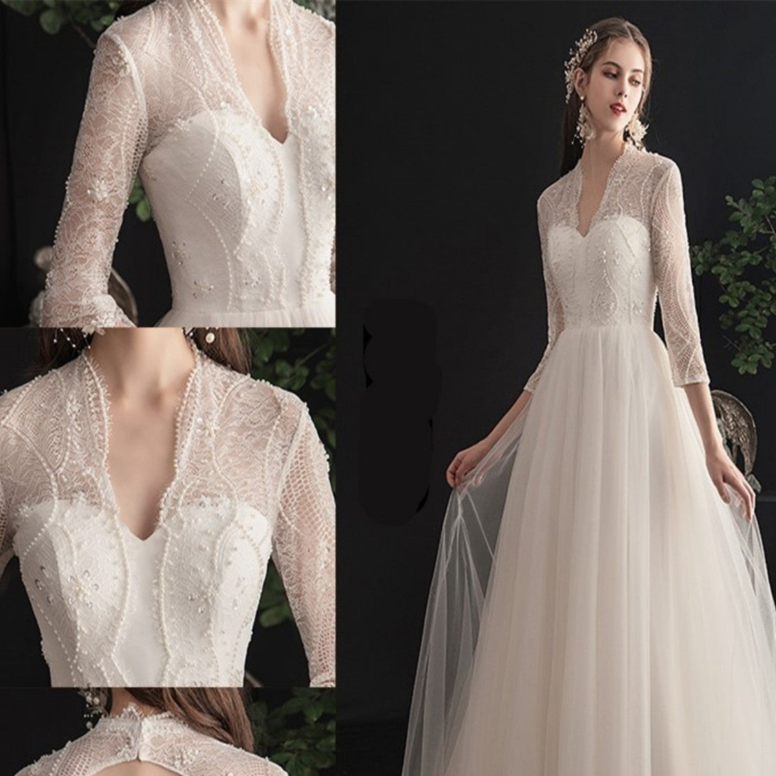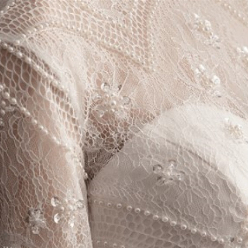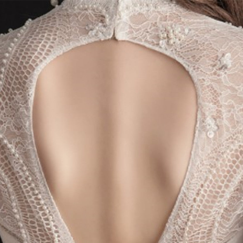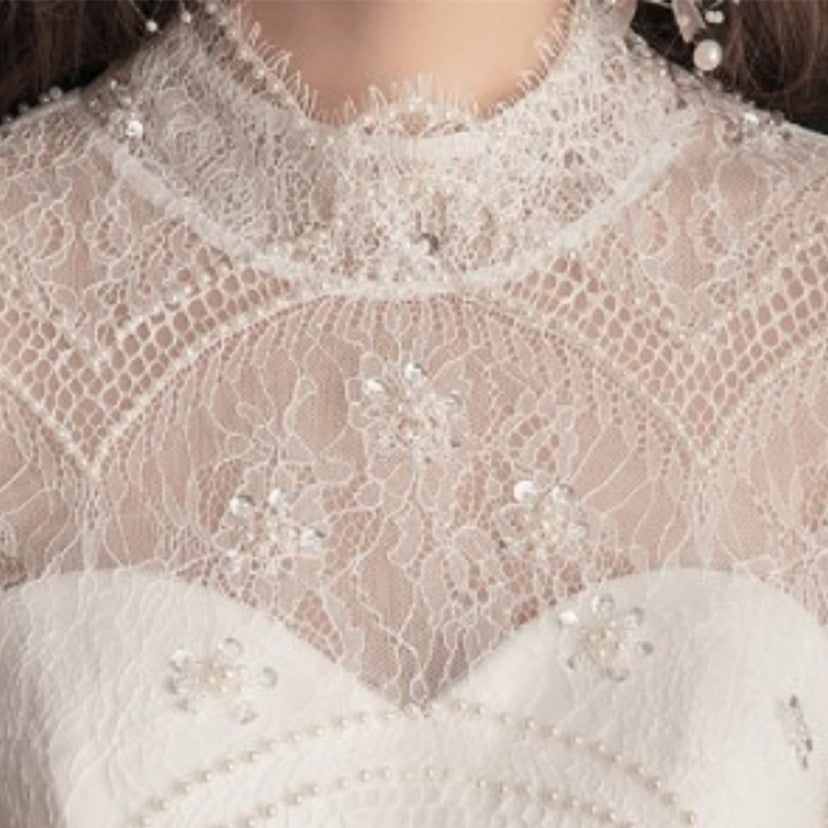 ウエディングドレス Aライン フィッシュテール 胸元レース