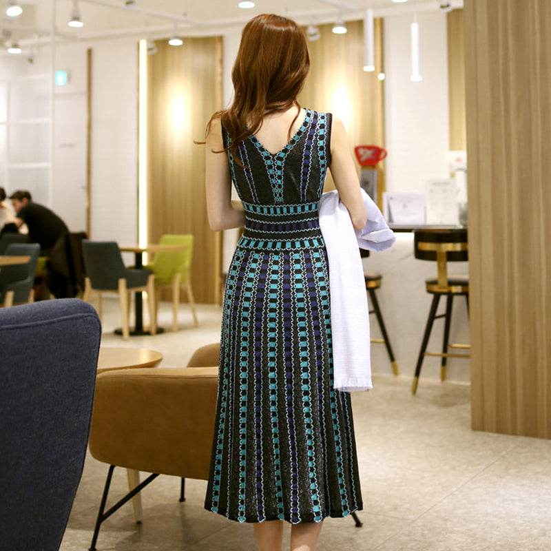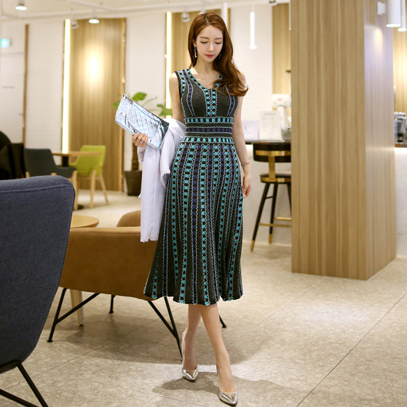 ラメを編み込んだ大人かわいいワンピースです。ニットワンピースなので、ジャケットやカーディガンを羽織って頂ければ、秋でもok。
