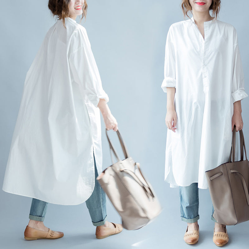 春新品ゆったり無人長袖シャツロング丈レディースワンピース痩せ大きいサイズ
