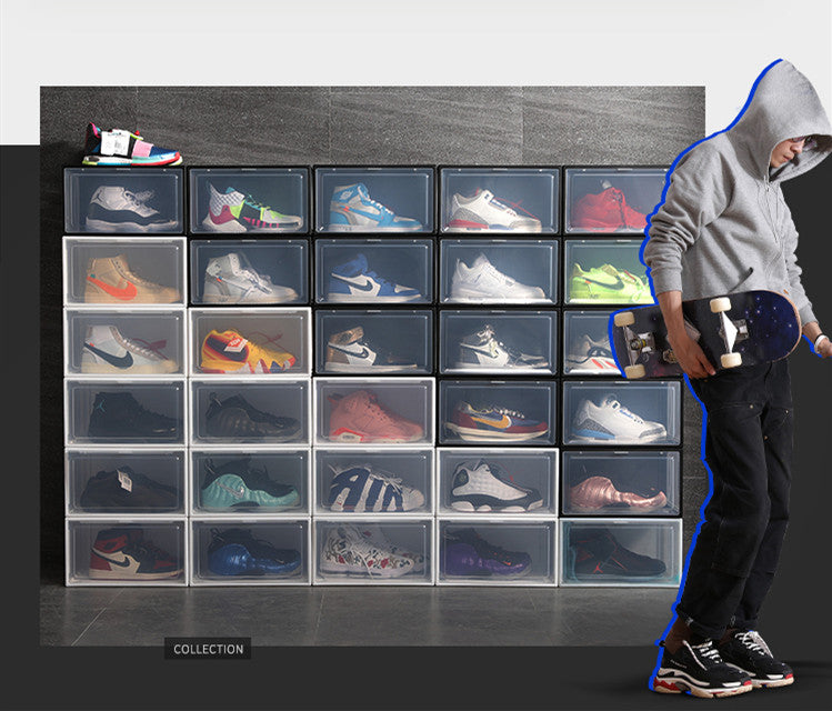 透明材質のタワーボックスは靴を展示する箱としてもよいですね。