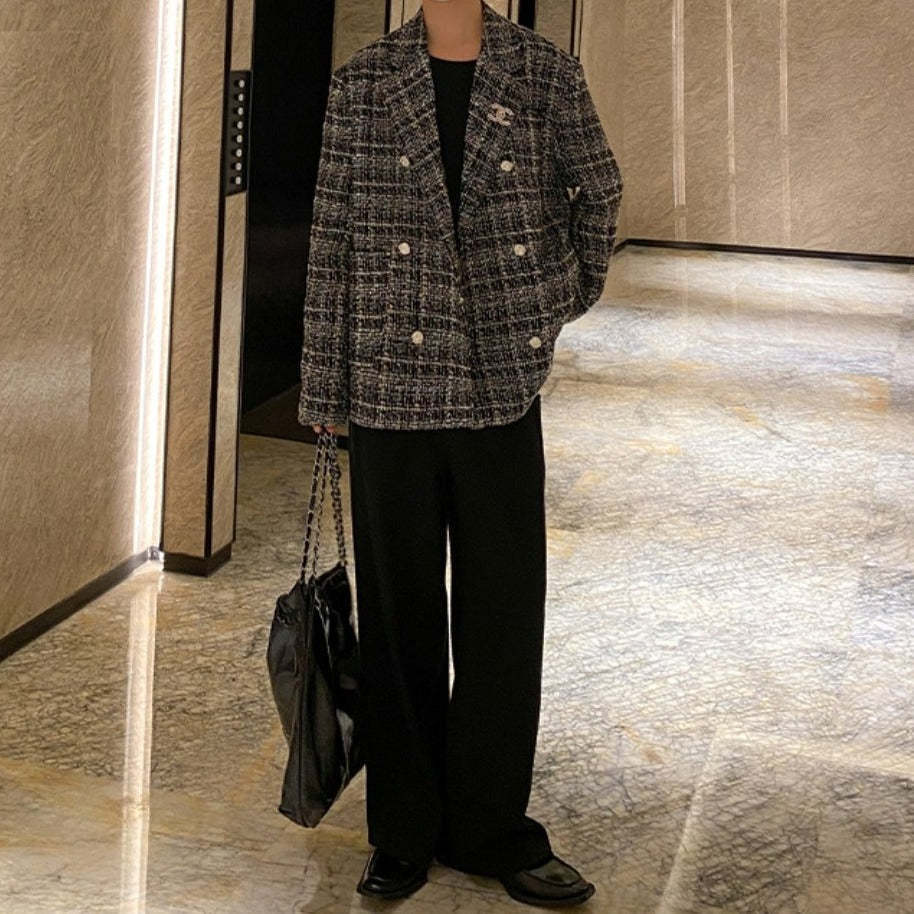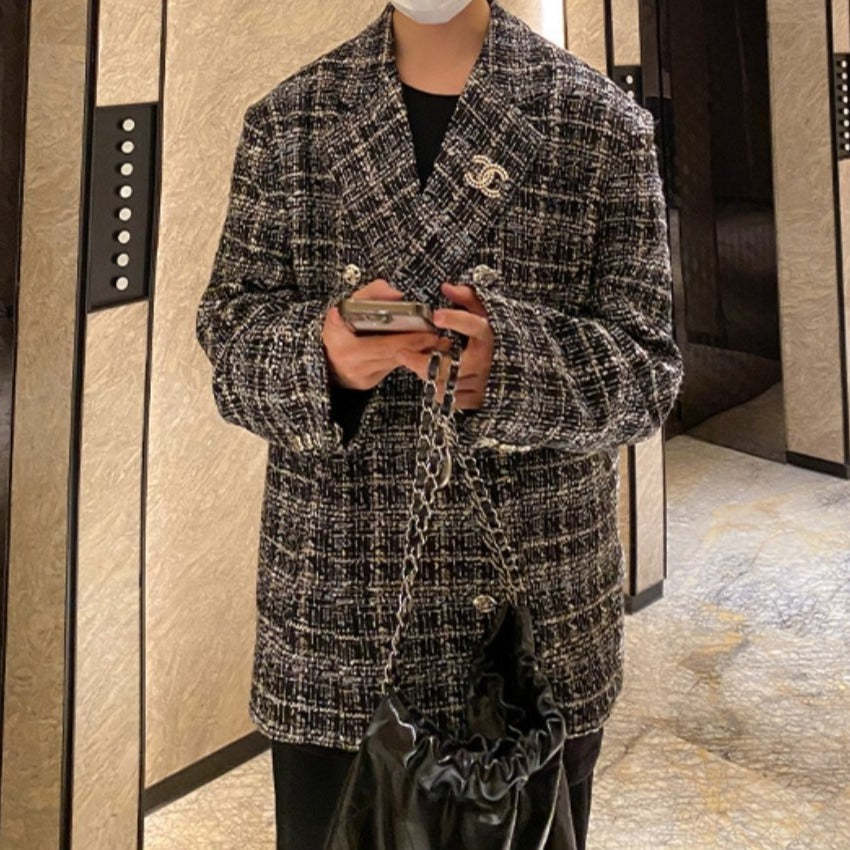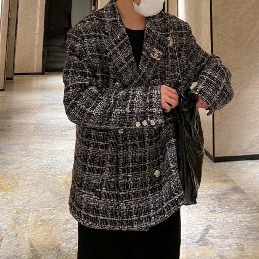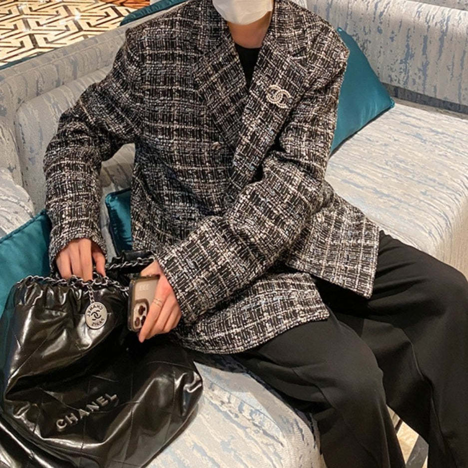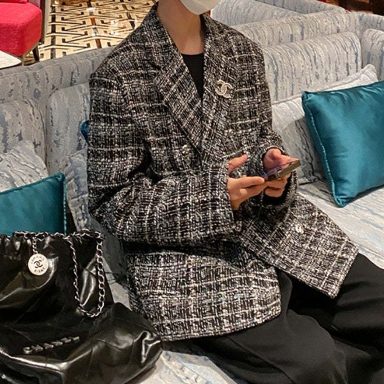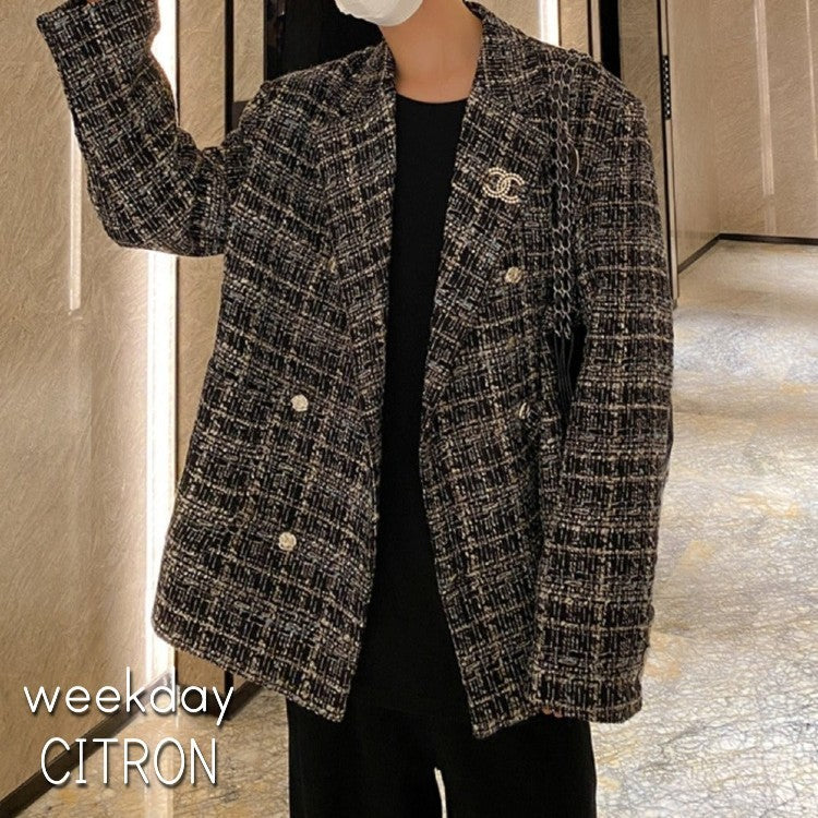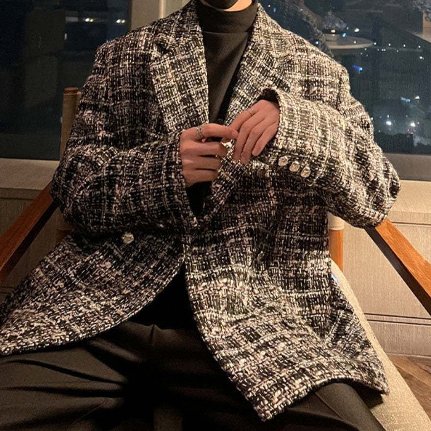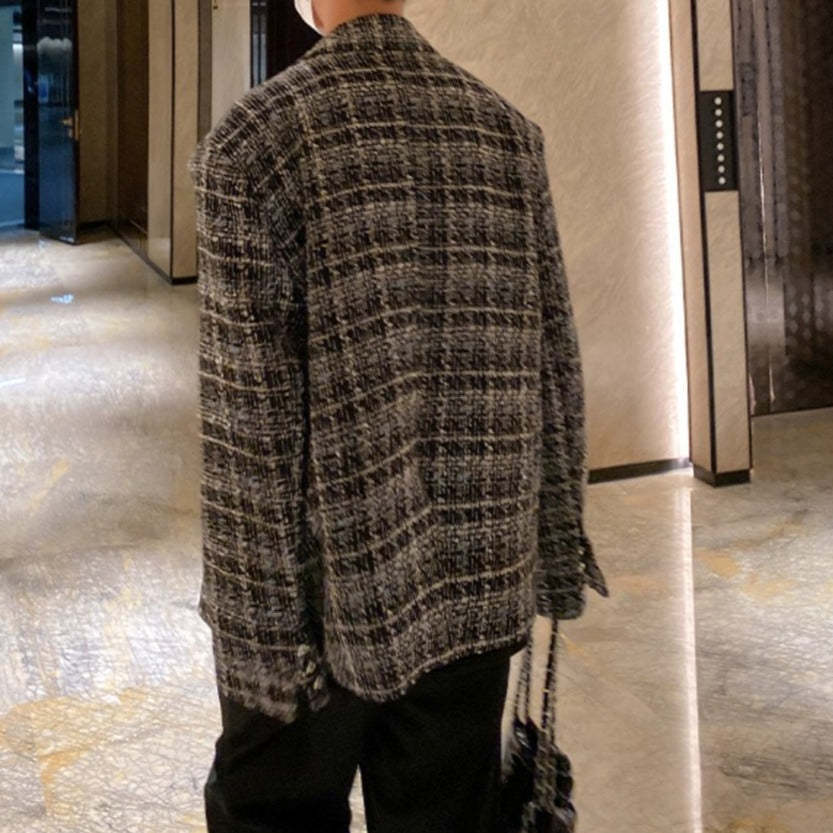 ツイード テーラードジャケットメンズ カジュアル 秋冬 韓国