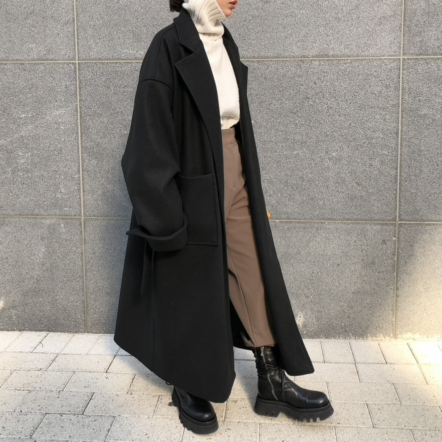 ハンサムかつレディな雰囲気漂うマキシ丈のウールコート!