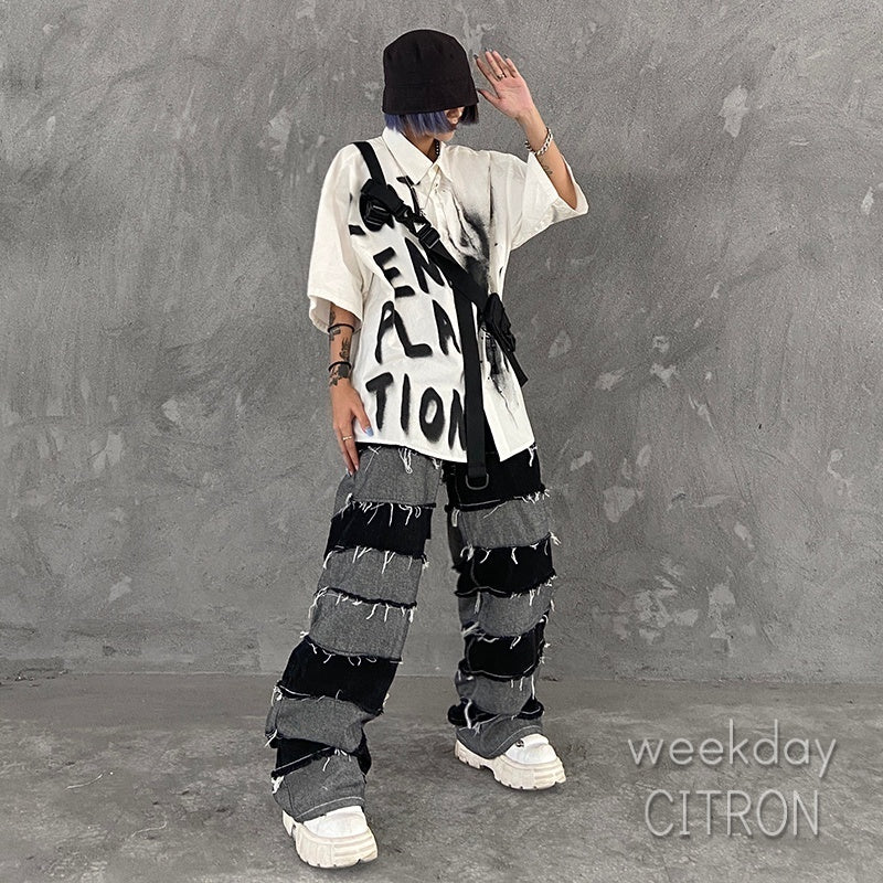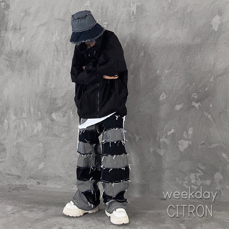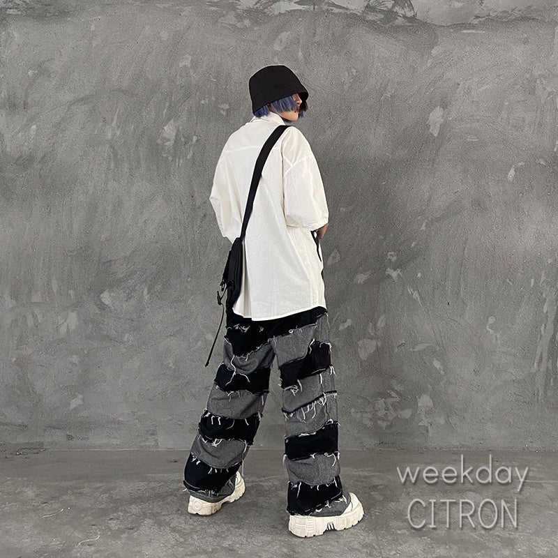 メンズ クラッシュデニム ワイドパンツ ダメージ加工 ジーンズ