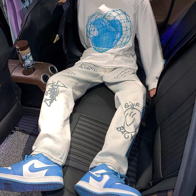 ワイドレッグパンツ ライン ルーズ ロゴ 柄パン ストリート