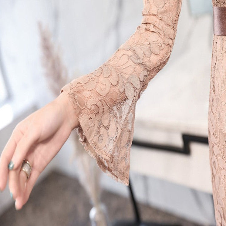 総レース シアー ワンピース ベルスリーブ 2色